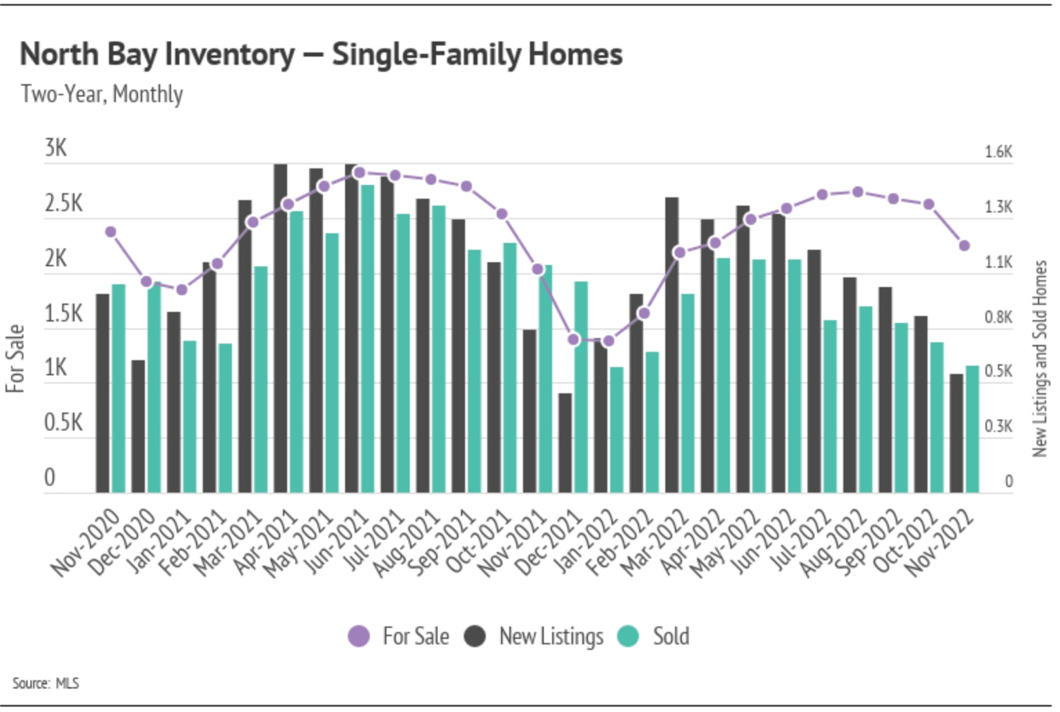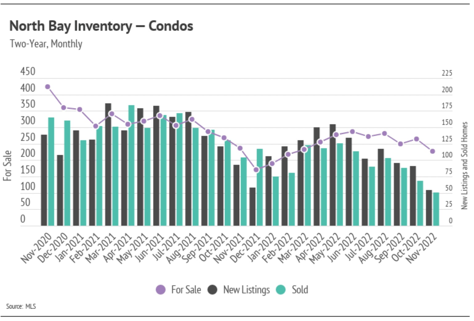 • The North Bay housing market has cooled considerably in the second half of 2022, a trend that will likely continue through the winter months.