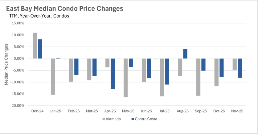 Quick Take: Median sale prices are largely on the decline throughout the East Bay. The East Bay has continued to buck the trend, as inventories are roughly flat on a y… Read more