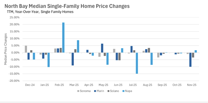 Quick Take: The median single-family home in Marin County sold for 10% less than it did just one year ago in November. Inventories in the North Bay dropped by more th… Read more
