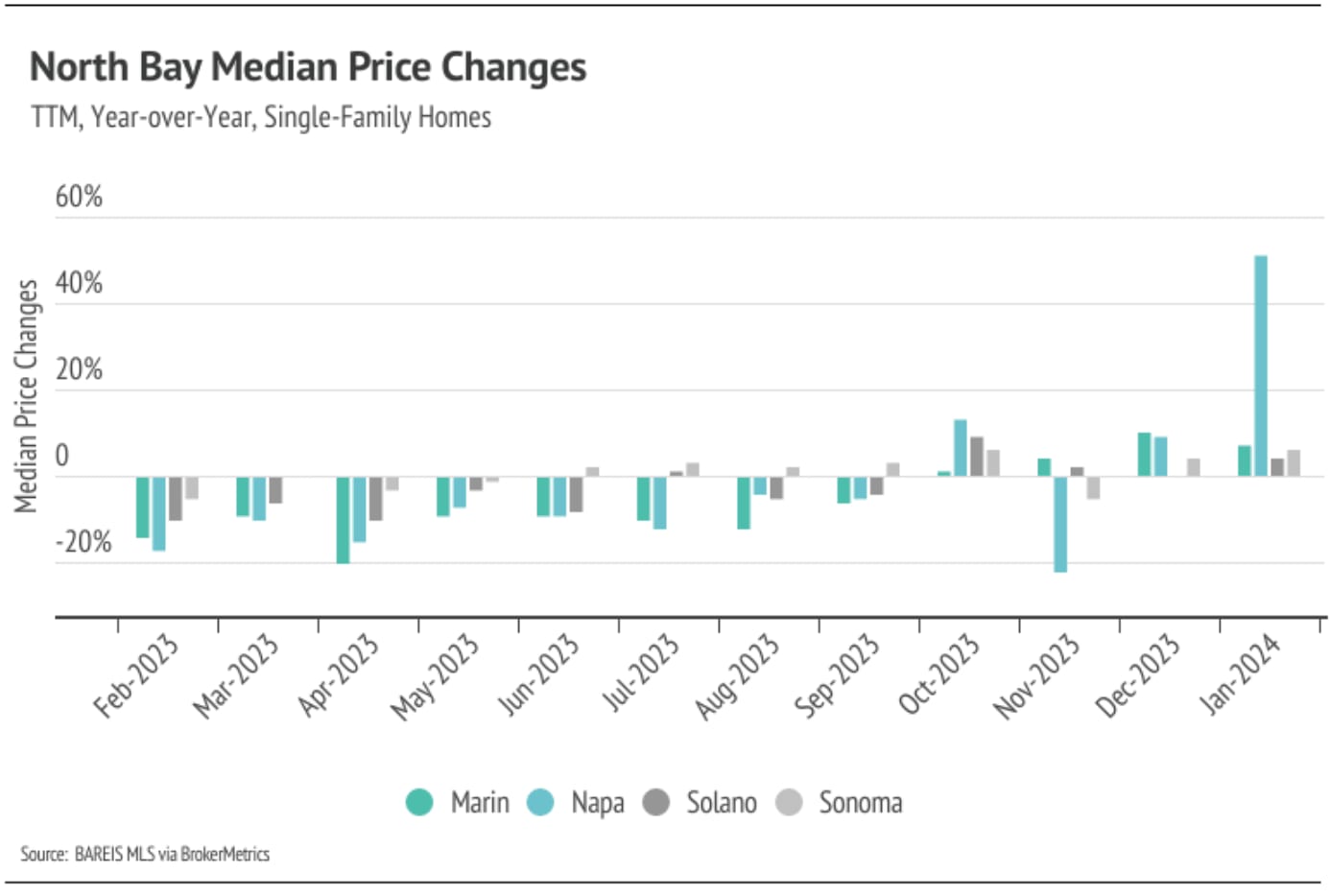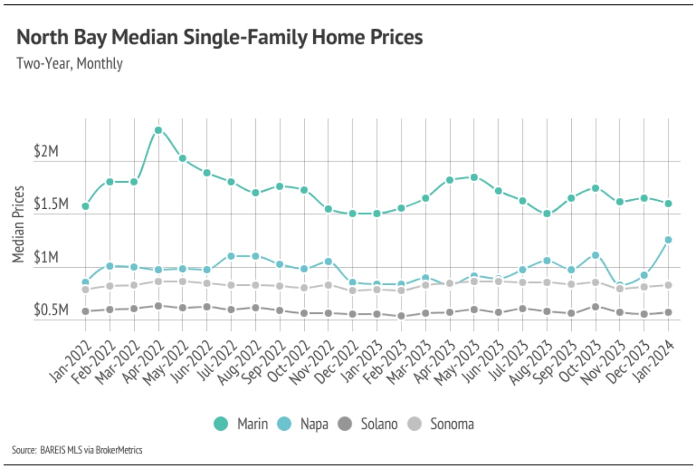 Quick Take: Median sale prices surged in Marin and Napa Counties, with single-family homes up 19.86% and 18.75% year-over-year, respectively, while Sonoma and Solano C… Read more