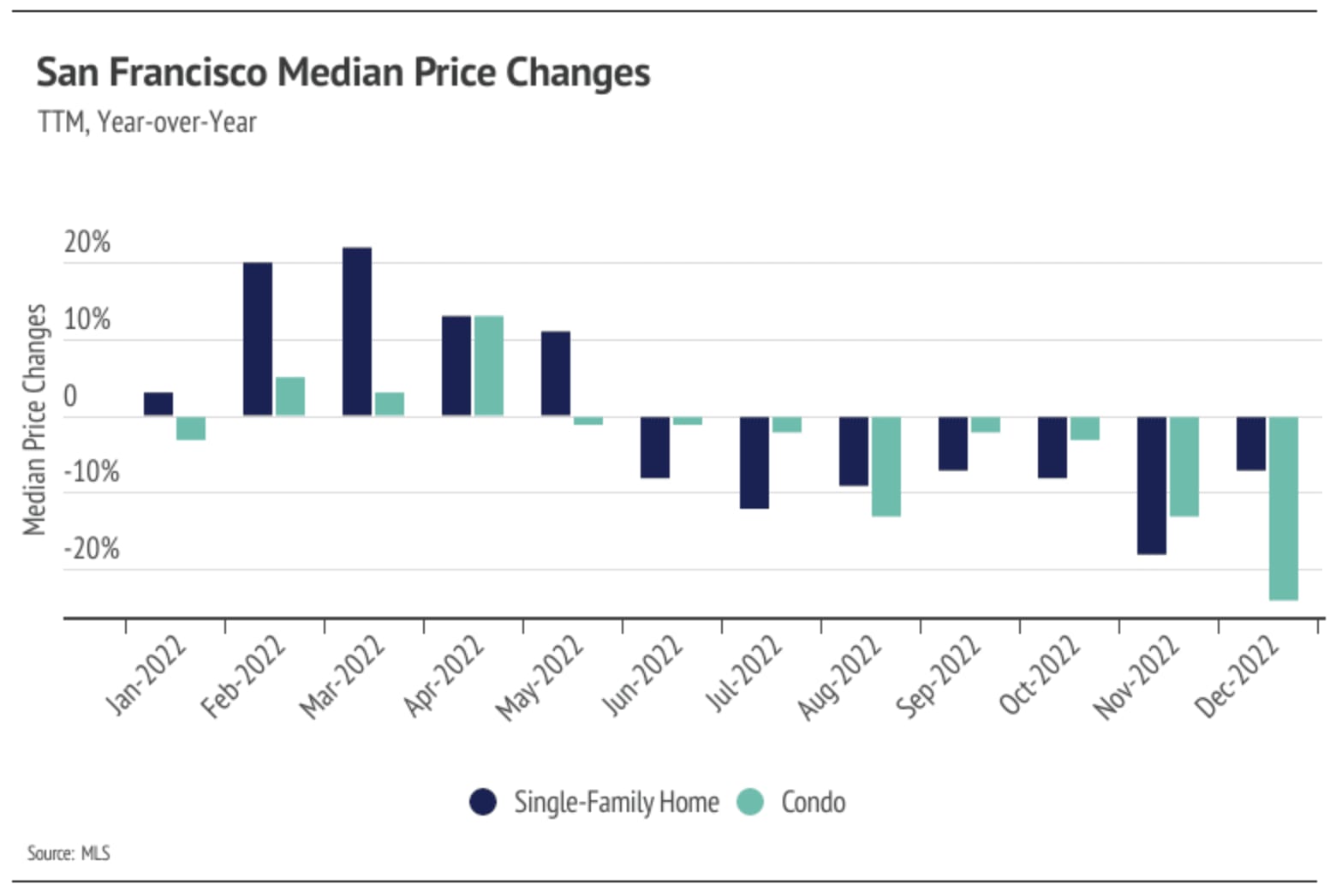 • Although prices have contracted significantly, the San Francisco housing market is entering 2023 as a sellers’ market for single-family homes and a balanced market for condos. We expect the market to remain favorable to sellers in the first quarter.