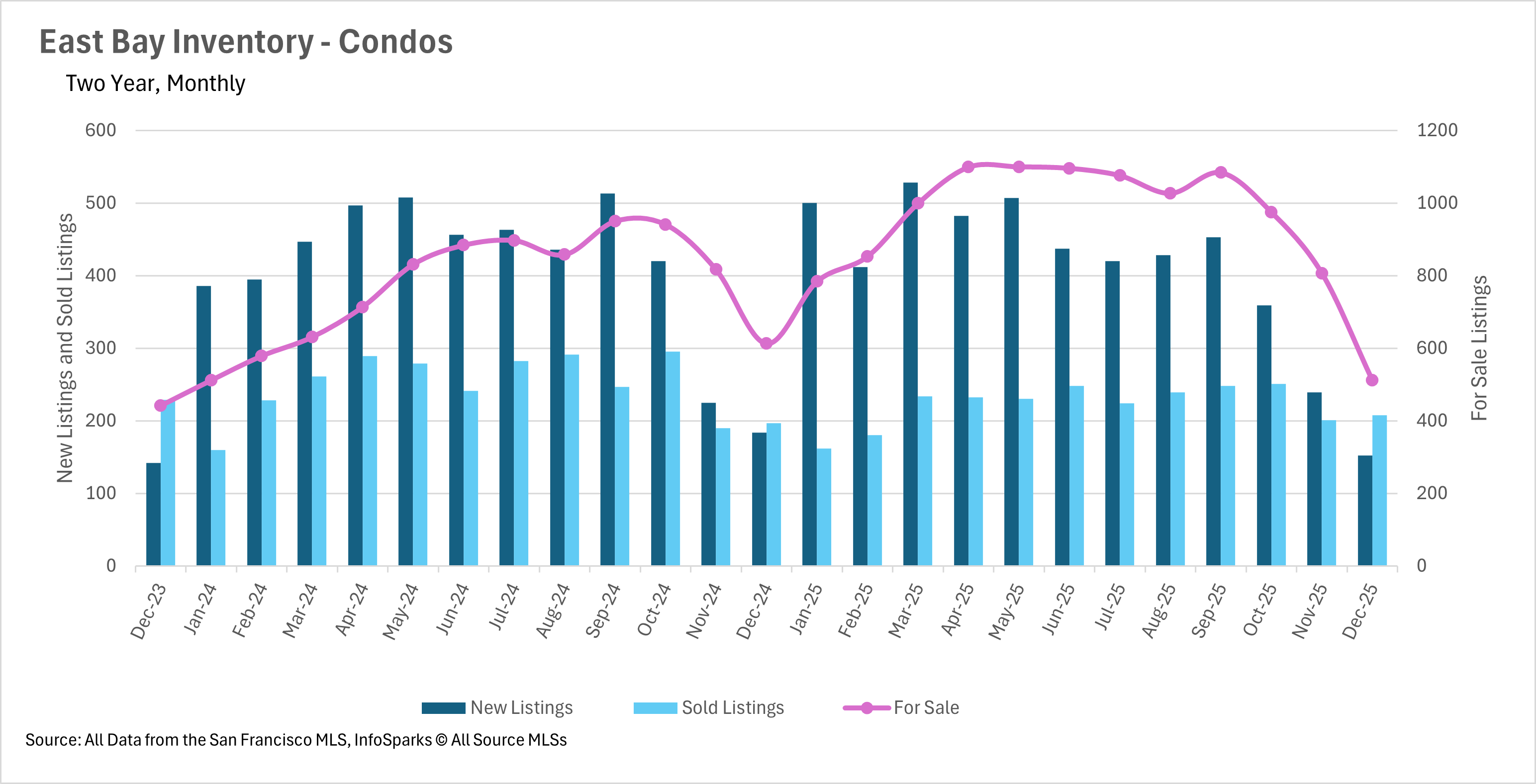 As we moved through the holiday season, inventory levels dropped significantly across the East Bay. Single-family home inventory fell by 18.70% on a year-over-year basis, with just 1,265 homes on the market at the end of December. The condo market saw a similar trend, with inventory declining by 16.48% year-over-year to just 512 units. This steep decline in inventory is fairly typical for this time of year, as sellers often wait until after the holidays to list their homes. However, the magnitude of the decline is notable, especially considering the elevated inventory levels we saw throughout much of 2025.