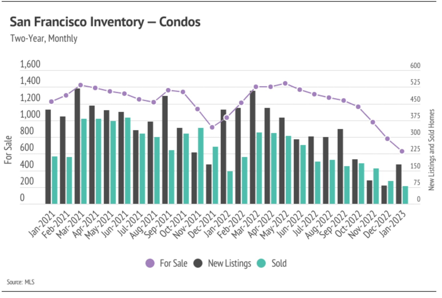 • The San Francisco housing market is once again near all-time-low inventory levels as far fewer new listings are coming to market.